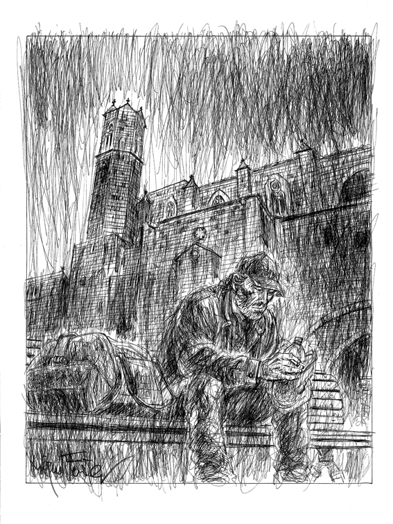Han callado las campanas de la catedral. Cobijado en el viejo banco de la plaza escondo mi rostro entre las manos y, en mi delirio, sueño que algún día ella volverá. Entonces, la siento poner en mi su mano delicada, la veo sonreír dulce y, con infinito cariño besar mis resecos y amargos labios de mendigo, tal como un día besara el Santo de Asís las mejillas del leproso.