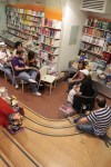 Miquel habla sobre su obra en la libreria Edison, en el centro de Pistoia